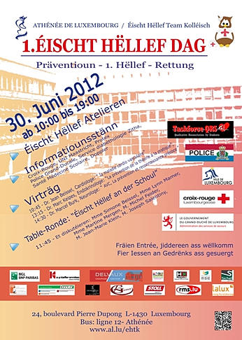 Den 30. Juni war am Stater Kolléisch déi 1. Versioun vum Éischt Hëllef Dag, organiséiert vum EHTK. Enner dem Motto: Präventioun – Éischt Hëllef – Rettung